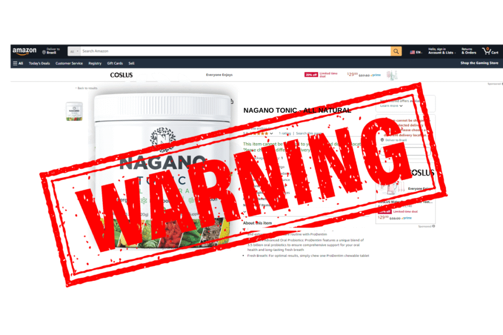 We strongly advise against ordering Nagano Tonic from Amazon, Walmart, eBay or Walgreens, as these sources often sell fake versions with entirely different ingredients, which can be very dangerous.