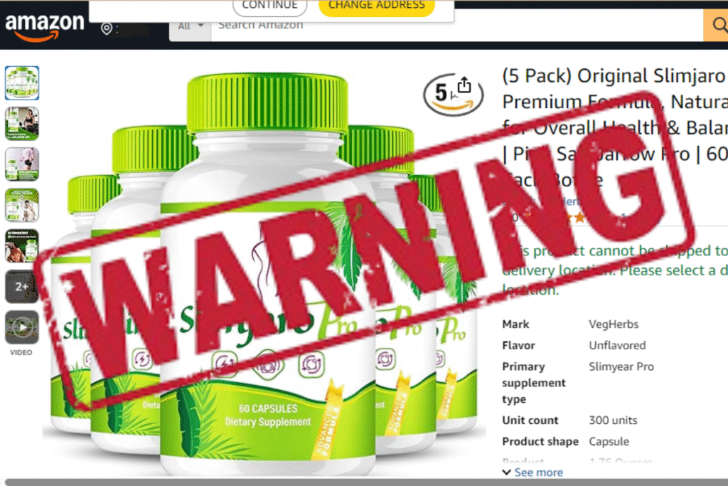 We strongly advise against ordering Slimjaro from Amazon, Walmart, eBay or Walgreens, as these sources often sell fake versions with entirely different ingredients, which can be very dangerous.
